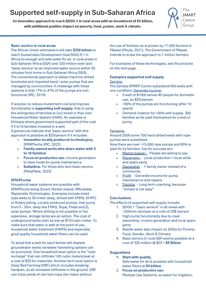 Brochure SMART Centres SMART Centre approach SMARTech catalogue Supported self-supply in Sub-Saharan Africa Safe water for all in Africa, pipe dream or filter reality? simonPromotional material09.13.2017